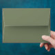 Elegant envelope featuring beautiful olive leaves pattern on the inside and sage green color on the outside.