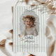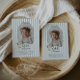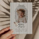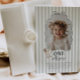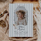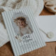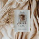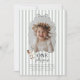 Celebrate your little one's Goose themed first Birthday with this easy to edit template. Featuring a playful wavy bow border with your own custom photo inside. There is a sweet little goose with a green bow on it in the corner, along with 'One silly goose' typography, along with a sage green stripy background.