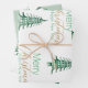 Sage Green Pagoda Christmas Tree Pattern Wrapping Paper Flat Sheet Set of 3