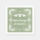 Sage green papel picado love birds wedding paper napkins. This lovely paper napkin showcases two love birds and flowers and the word "Love" in sage green and white.