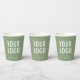 Easily personalize our 8 ounce paper cups with your business logo and custom text. These FDA approved paper cups are for cold and hot drinks. The dimensions for the 8 oz cups are 3.75 inch x 3 inch. Available with or without lids. Also available in 12 oz size. Designed in sage green and other colors (all colors are customizable). Sold in sets of 8. Low minimum order quantity and no setup fee. Printed in the U.S.A.