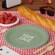 Promote your brand with durable round paper plates printed with your company logo. You can easily personalize these sage green plates online to match any event or promotion. All colors are customizable. FDA-compliant, these plates are printed in the USA and sold in small order quantities. The size options are 9 inches and 7 inches diameter. No setup fee.