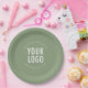 Sage Green Paper Plates Company Logo Branded Bulk