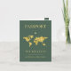 Surprise your loved ones with this stylish passport style wedding invite, featuring sage green background, gold gradient map and your custom details. Easily customize it by clicking on the "personalize" option.