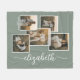 Sage Green Personalized With Name 5 Photo Collage Fleece Blanket