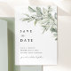 This save the date is part of a coordinated sage green botanical wedding collection.