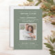 This elegant photo wedding invitation features a timeless sage green background with a centered white photo frame to showcase your favorite engagement picture. Classic serif typography presents your names and wedding details in a clean, formal layout, making it perfect for couples seeking a refined and modern design. The understated style pairs beautifully with any wedding theme, from rustic to contemporary, and allows your photo to be the focal point.