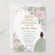 Sage Green Pink Floral Brown Girl Quinceañera Invitation