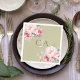 Personalize and add your monogram, initials A sage green background color. Decorated with pink watercolored roses, florals.