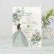 Sage Green Princess Florals Gold Crown Quiñceanera Invitation