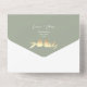 Elegant and eco-friendly, this sage green all-in-one wedding invitation features a romantic faux gold lovebirds motif, space for three custom photos, and a QR code for quick RSVP access. Designed with modern couples in mind, it includes a section for your wedding website and guest details. No envelope required—just fold and mail for a sustainable, stylish solution.