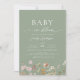 Sage Green QR Code Wildflower Baby in Bloom Invitation