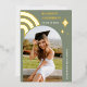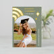 Celebrate your graduation in style with this unique sage green graduation announcement! This eye-catching design features a modern arch with delicate stars and a whimsical rainbow, all printed in real gold foil for a touch of luxury. The sage green background adds a touch of sophistication. Personalize it with your name, school, class year, and a special message to create a truly unique keepsake. Perfect for sharing your achievement with friends and family. Printed on high-quality card stock with a variety of paper types and finishes to choose from.