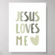 Sage green rainbow Jesus loves me poster