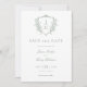 Sage Green Regency Floral Crest Monogram Wedding Save The Date