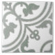 Set of 2 (1/2) This ceramic tile is a crossover from the Dutch Delft Blue tradition and Azulejo tiles in sage green and is a stunning example of artistry and craftsmanship. The tile features a symmetrical floral theme, with a central flower surrounded by smaller leaves. The tile is glazed in the traditional Delft Blue and white color scheme. Perfect for adding a touch of elegance to any architectural setting, it can be used to decorate floors, walls, fireplaces, or furniture. The symmetrical floral theme is a classic Delftware motif, and this tile accurately represents the art and craft of the Dutch Delft Blue tradition.