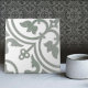 Set of 2 (2/2) This ceramic tile is a crossover from the Dutch Delft Blue tradition and Azulejo tiles in sage green and is a stunning example of artistry and craftsmanship. The tile features a symmetrical floral theme, with a central flower surrounded by smaller leaves. The tile is glazed in the traditional Delft Blue and white color scheme. Perfect for adding a touch of elegance to any architectural setting, it can be used to decorate floors, walls, fireplaces, or furniture. The symmetrical floral theme is a classic Delftware motif, and this tile accurately represents the art and craft of the Dutch Delft Blue tradition.