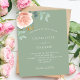 A sage green background. Decorated with a rose gold and blush pink floral, rose flower and green watercolored eucalyptus leaves, sprigs, greenery and faux gold sprigs. Personalize and add your names and wedding details.