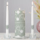 Personalize special candles for your wedding ceremony with a set of Sage Green Rose Wedding Unity Candle Set. Candle design features white roses and matching tiled background. Personalize with the groom and bride's names along with the wedding date, and taper candles with surnames. Additional wedding stationery and gifts available with this design as well.