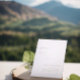 The matter paper is our sample of choice -- it's a reasonably priced, good quality, nice feeling paper stock. We were a little concerned the muted rustic blues might not reproduce all that well (usually by light colored samples), but they're just gorgeous! The white lettering is perfect in combination with the blue background, and the typography is all easy to read.