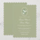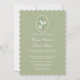 Sage green scalloped wedding invitation designed for refined garden celebrations with timeless charm. Featuring an elegant die-cut scallop edge and a classic oval floral motif inspired by chinoiserie tradition, this invitation blends grandmillennial romance with Old Money sophistication. Ideal for spring and summer outdoor weddings, it pairs beautifully with ivory envelopes, wax seals, silk ribbon, or vellum wraps. Personalize to create a cohesive heirloom-style stationery suite.