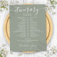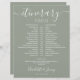 This stylish grey and white wedding itinerary schedule timeline can be personalized with your wedding details in chic lettering on a sage green background. Designed by Thisisnotme©
