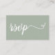 The sage green motif color adds a touch of sophistication and blends beautifully with the elegant script typography. The script font used for the word "rsvp" is adorned with long-tailed embellishments, adding a stylish and graceful element to the design.