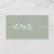 The sage green motif color adds a touch of sophistication to the card, creating a harmonious and elegant design. The script typography used for the word "details" is beautifully adorned with long-tailed embellishments, adding an extra touch of refinement.