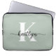 This simple, elegant sage green 13" laptop sleeve with your first name in a trendy script font in black and your first initial in a modern cap font in white is perfect for you. It's stylish and trendy and yet very classic. It's unique - like you!