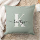 This simple, elegant sage green 20 inch throw pillow with your first name in a trendy script font in black and your first initial in a modern cap font in white is perfect for you. It's stylish and trendy and yet very classic. It will look fabulous in your bedroom, living room, viewing room, she shed.