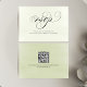 Elegant and minimalist wedding RSVP response card featuring a sophisticated calligraphy script and a convenient QR code for easy online replies. Designed with soft sage green tones and a clean, modern layout, this card is perfect for garden, botanical, or greenery-themed weddings. A stylish and practical way to streamline guest responses while keeping your wedding stationery suite cohesive and timeless. Fully customizable to match your special day.