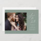 Modern script minimalist design in sage green, with couple's photo, simple and elegant. Great photo save the date cards for modern wedding and other events.