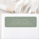These minimalist and elegant wedding return address labels feature modern white text on a sage green background. A simple and stylish look.