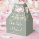 Elegant wedding favor box featuring pretty string lights, chic signature script names and special date on a sage green background. You can personalize with your own thank you message on the reverse. A perfect way to say thank you to your guests! Designed by Thisisnotme©