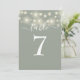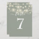 These stylish sage green string lights double-sided table number cards are perfect for all celebrations. Designed by Thisisnotme©