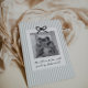 Looking for a sweet and meaningful way to ask loved ones to be your baby's Godparents? This card design is the perfect way to pop the question! Whether you're asking a family member or close friends, this template helps you create a heartfelt moment that they'll treasure forever. This design features a sage green stripy background and a black bow, along with space for a photo of your choice. You can edit the colour of the stripes, bow and all of the text in this design.
