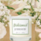 Gift your wedding bridesmaids with this personalized soy candle that features your bridesmaid sage green color scheme along with her name printed in black, stylized script inside a white square with a trendy, sage green color border. Included as well is the wedding event date. Personalize your candle by editing and replacing name and date. Select your candle scent. Available in many, popular bridesmaid wedding color schemes.