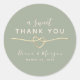 Add a charming touch to your wedding favors with this elegant sage green "A Sweet Thank You" sticker. Featuring a romantic gold rope heart, modern script, and your names and date, it's perfect for cookie bags, candy boxes, and homemade treats. A stylish way to show gratitude on your special day.