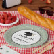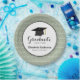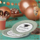 This graduation paper (disposable) plate features a graphic of a graduation hat (mortarboard) and custom text to personalize with the graduate's name. This paper plate is accented with a white swirl pattern on a sage green background.