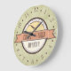 Light sage green background on this kitchen clock with vintage style emblem with chef's knife and whisk declaring you rock the kitchen, or change the text to suit your style.