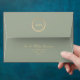 Simple, elegant, modern sage green 5x7 envelope with adorable unique gold butterfly - symbol of spiritual rebirth, hope, and life, return address and monogram at the top back.