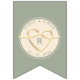 Simple, elegant, minimal, modern sage green wedding bunting flags, with monogram and gold rope heart.