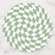 Modern bohemian Sage Green color theme bridal wedding party products. Evergreen retro trendy warped checks design, warped checkered paper plates in beautiful elegant and chic Sage Green and white color.