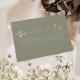 Provide guests with important information using this elegant sage green wedding details card. Adorned with soft beige and gold floral accents and refined calligraphy, it’s perfect for sharing your website, directions, accommodations, and more.
