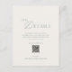 An elegant wedding details card featuring refined sage green typography and a modern QR code layout.