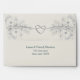 Elegant rustic sage green wedding return address 5x7 envelope with silver rope heart at the top flap and gilded floral lace.