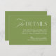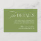 This elegant sage green wedding details card is perfect for sharing travel info, accommodations, and other helpful notes with your guests. Designed to coordinate with classic outdoor, garden, or destination weddings, it features refined serif and script fonts in a timeless layout. Fully customizable — add your own website or text with ease.