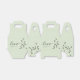 Personalize each favor box with the names of the bride and groom, as well as the wedding date. This customization adds a special touch and makes each box unique to your celebration. Our elegant Love Script, showcased in hues of dark green, sage, and light sage, perfectly complements the botanical theme of your wedding.