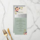 Simple, rustic, botanical, elegant sage green wedding menu with watercolor blush pink flowers and modern calligraphy script.
