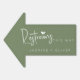 Sage green wedding restrooms this way arrow sign